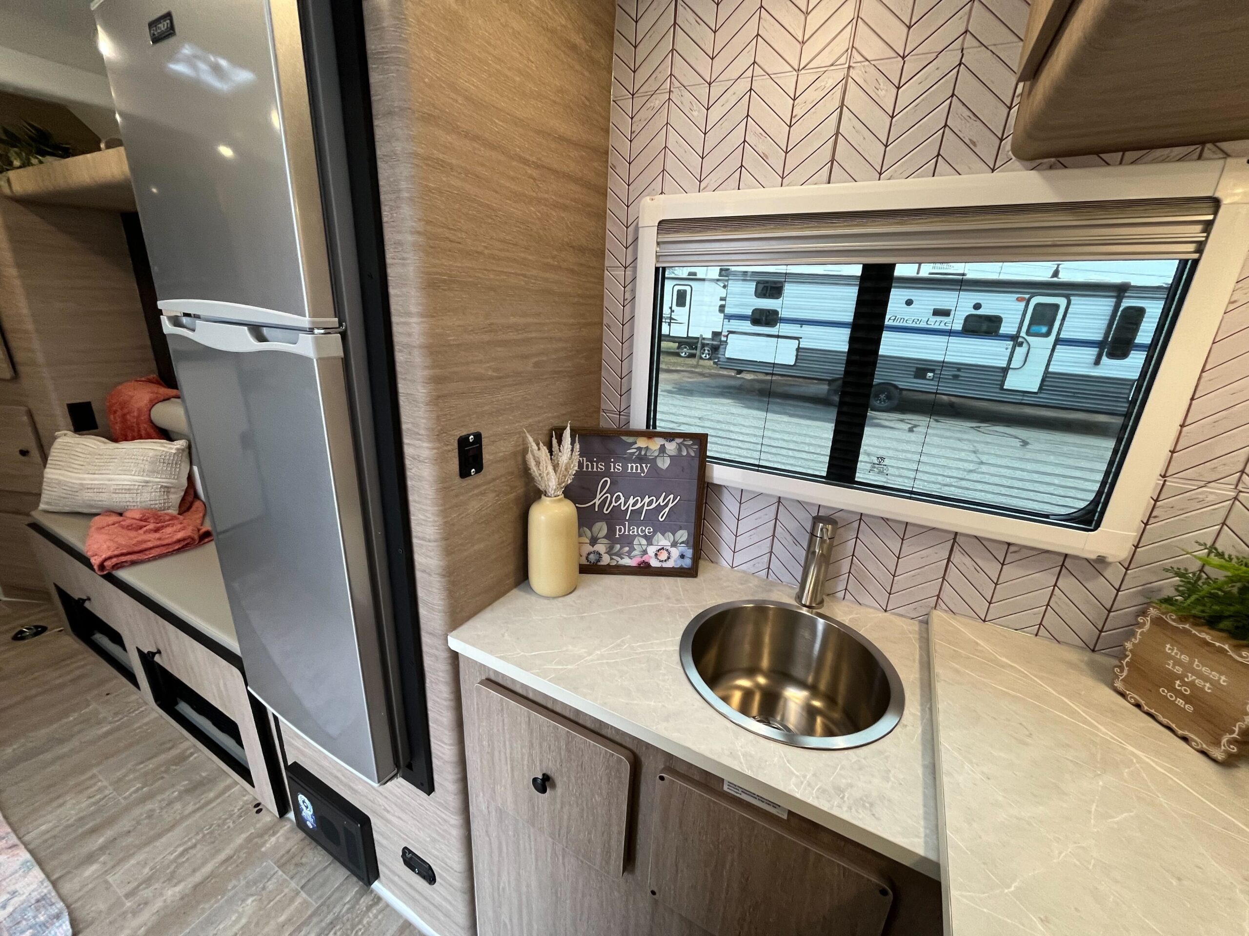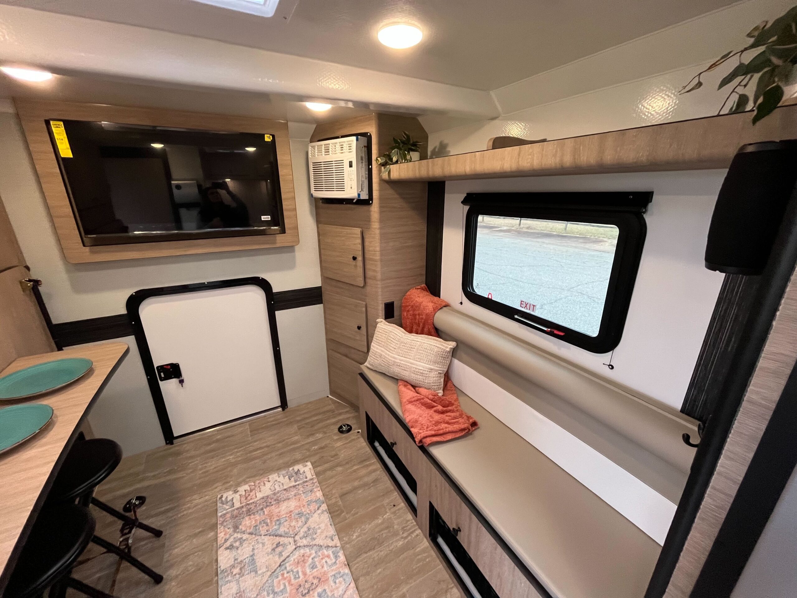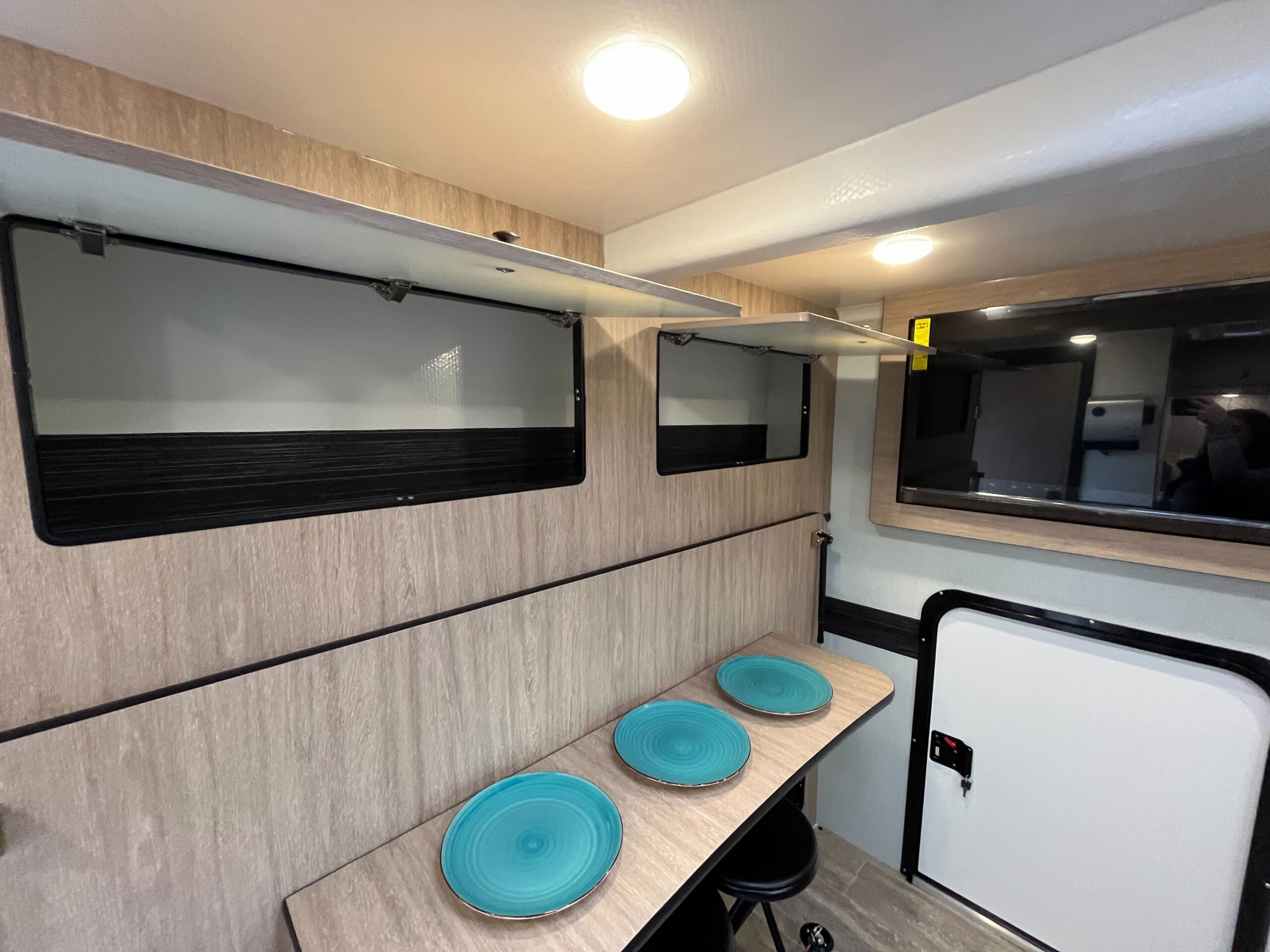 The latest camper series boasts a new heating and air conditioning system, offering customization options like an outdoor shower, 40″ TV, electric brakes, and more!